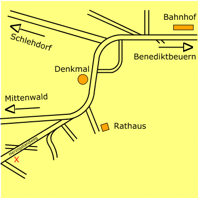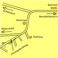 Oder von Benediktbeuern her kommend: Folgen Sie nach dem Ortseingang der Hauptstraße. Nach einer gestreckten S-Kurve sehen Sie linkerhand die HypoVereinsbank. Ordnen Sie sich links ein und biegen sie in den Herzogstandweg ein.