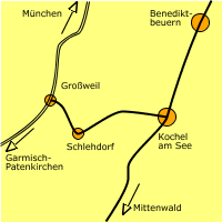 Mit dem Auto: Autobahn Garmisch-München, Ausfahrt Großweil/Kochel. Ausschilderung nach Kochel beachten. Nach dem Ortseingang bis zur Hauptstraße des Dorfes (Vorfahrtsschild). Rechts Richtung Mittenwald abbiegen und (nach nur 150 m) die 3. Straße nach links (Herzogstandweg) wählen